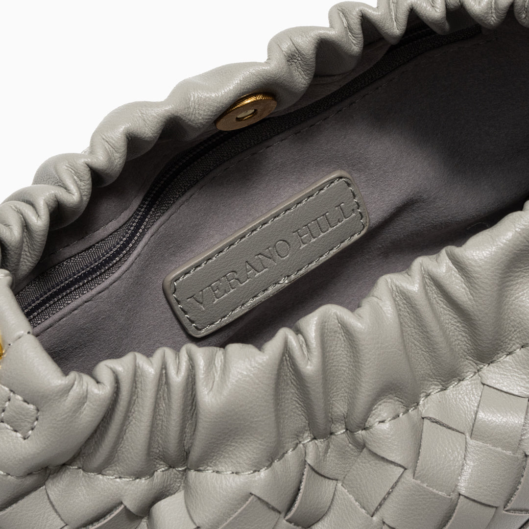 Wykonana w miękkiej sylwetce o efekcie chmury i zrobiona z wysokiej jakości wegańskiej skóry, jest lekka, ale jednocześnie wyrafinowana. Jej elegancka struktura pomieści wszystko, co potrzebne, podczas gdy pleciony złoty pasek dodaje blasku i kobiecości każdemu strojowi.