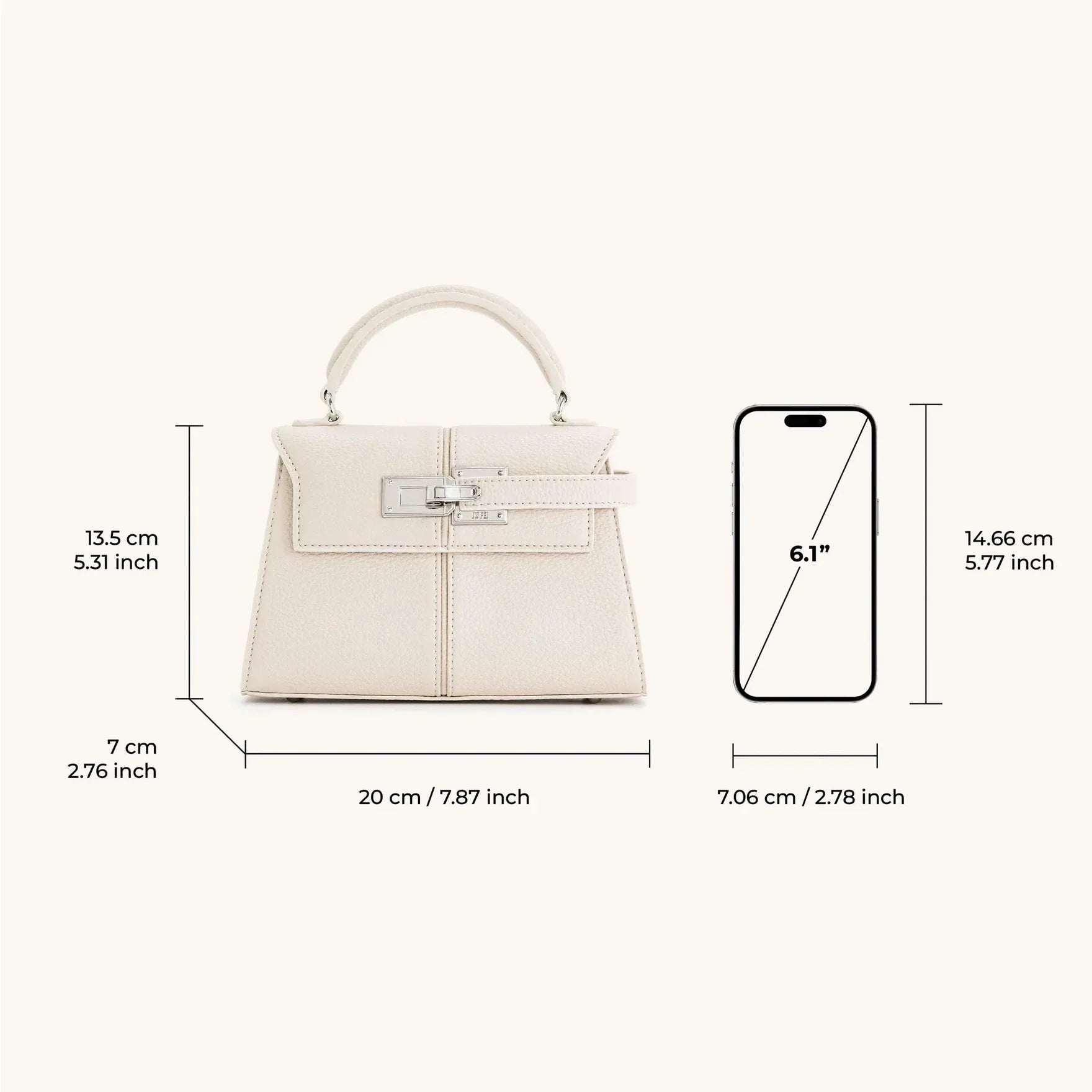 Torebka Isla Top Handle to nowoczesna deklaracja luksusu, charakteryzująca się unikalną spiralną sylwetką inspirowaną wiatraczkami, wykonaną z miękkiej, wegańskiej skóry premium. Innowacyjny uchwyt górny, elegancko połączony za pomocą ukrytego złącza, opada naturalnie podczas używania paska na ramię, oferując wszechstronność i bezwysiłkową transformację między torebką na ramię a torbą do ręki.