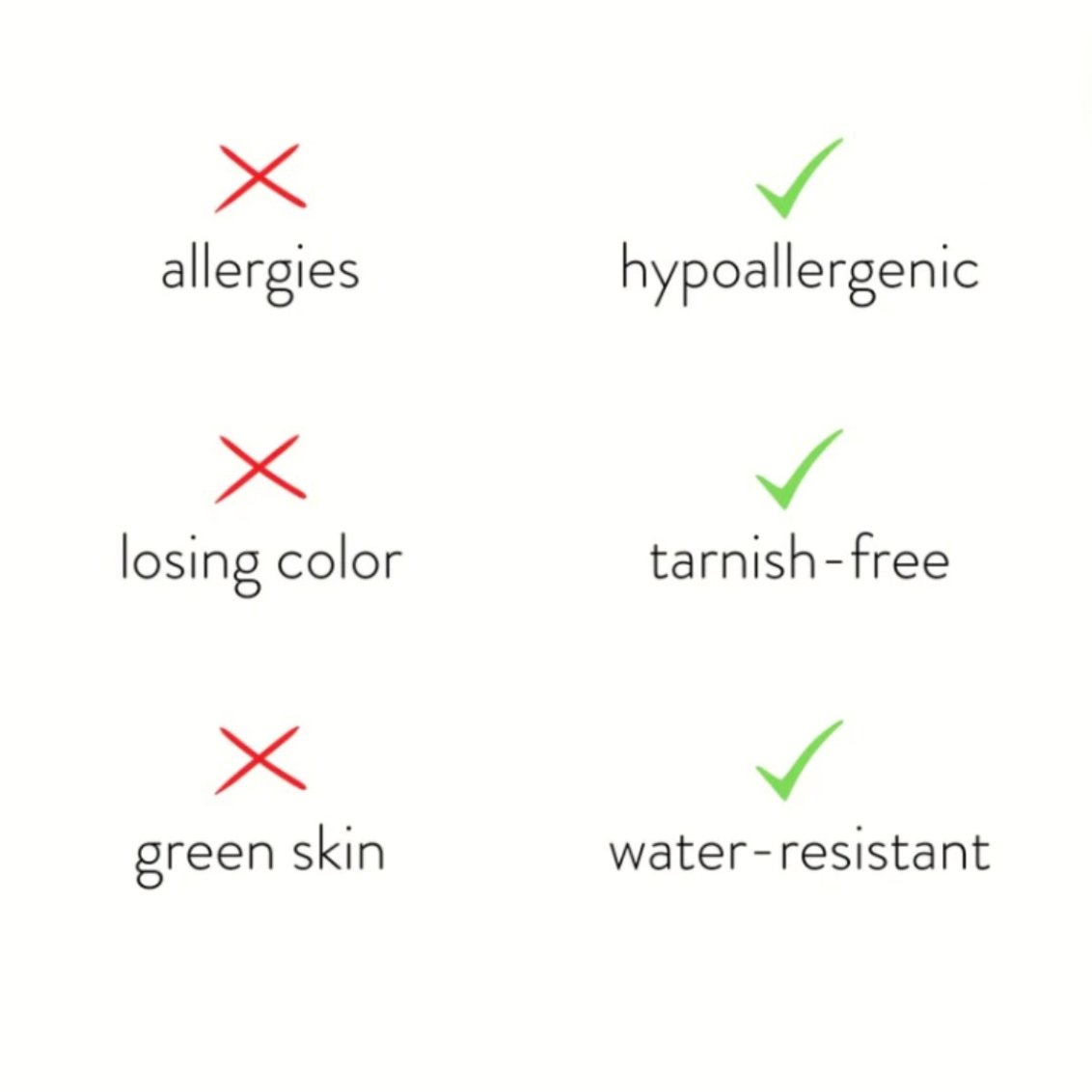 Wykonana z odpornej na wodę stali nierdzewnej, nigdy więcej nie będziesz musiał martwić się o blaknięcie lub utlenianie biżuterii.